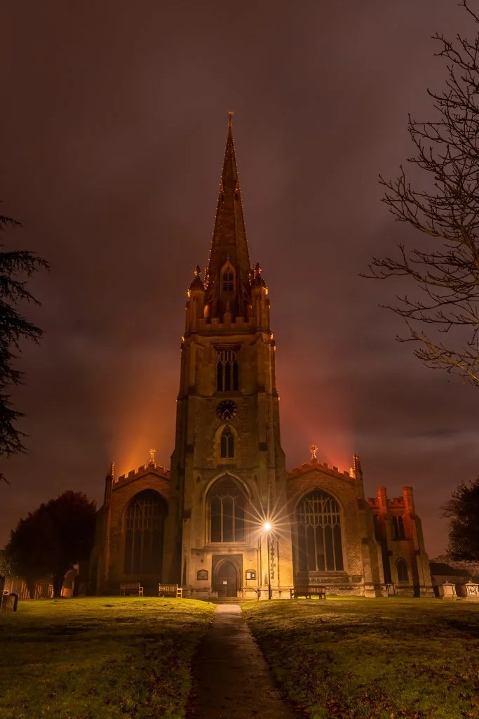 I should probably start with the beginning, but I'm a bit of an anarchist so I will make my first entry about a single picture, taken a couple of days ago. Rewind time. Friday night, work finished, outside was cloudy with a chance of meatballs. Joking, it was a bit foggy. And I thought I should try a to take a picture of Saffron's Walden Church. Another one!